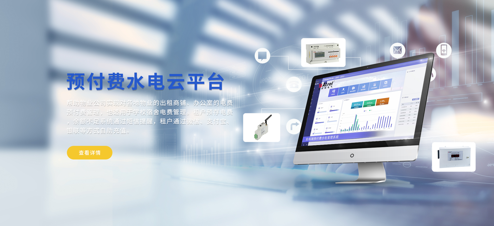 安科瑞提供的解決方案包括Acrel-EIoT能源物聯(lián)網(wǎng)云平臺變電所運(yùn)維云平臺、安全用電管理云平臺環(huán)保用電監(jiān)管云平臺、智慧消防云平臺、能源管理云平臺、工業(yè)企業(yè)能源管控平臺、遠(yuǎn)程預(yù)付費(fèi)云平臺餐飲油煙監(jiān)管云平臺、電動汽車/電瓶車充電樁收費(fèi)管理云平臺、電力監(jiān)控/無線測溫系統(tǒng)、電能質(zhì)量治理系統(tǒng)、電氣火災(zāi)監(jiān)控系統(tǒng)消防設(shè)備電源監(jiān)控系統(tǒng)防火門監(jiān)控系統(tǒng)、應(yīng)急照明和疏散指示系統(tǒng)、智能照明控制系統(tǒng)、醫(yī)用隔離電源絕緣監(jiān)測系統(tǒng)等,幫助用戶實現(xiàn)能源智能化、可視化、精細(xì)化管理,提高用能效率和用能安全,為企業(yè)節(jié)能降耗和實現(xiàn)能源數(shù)字化建設(shè)提供數(shù)據(jù)服務(wù)。